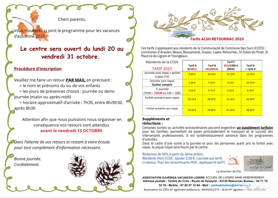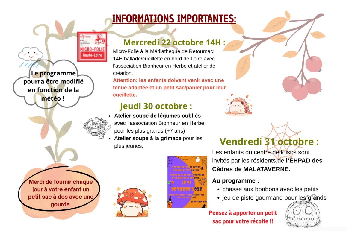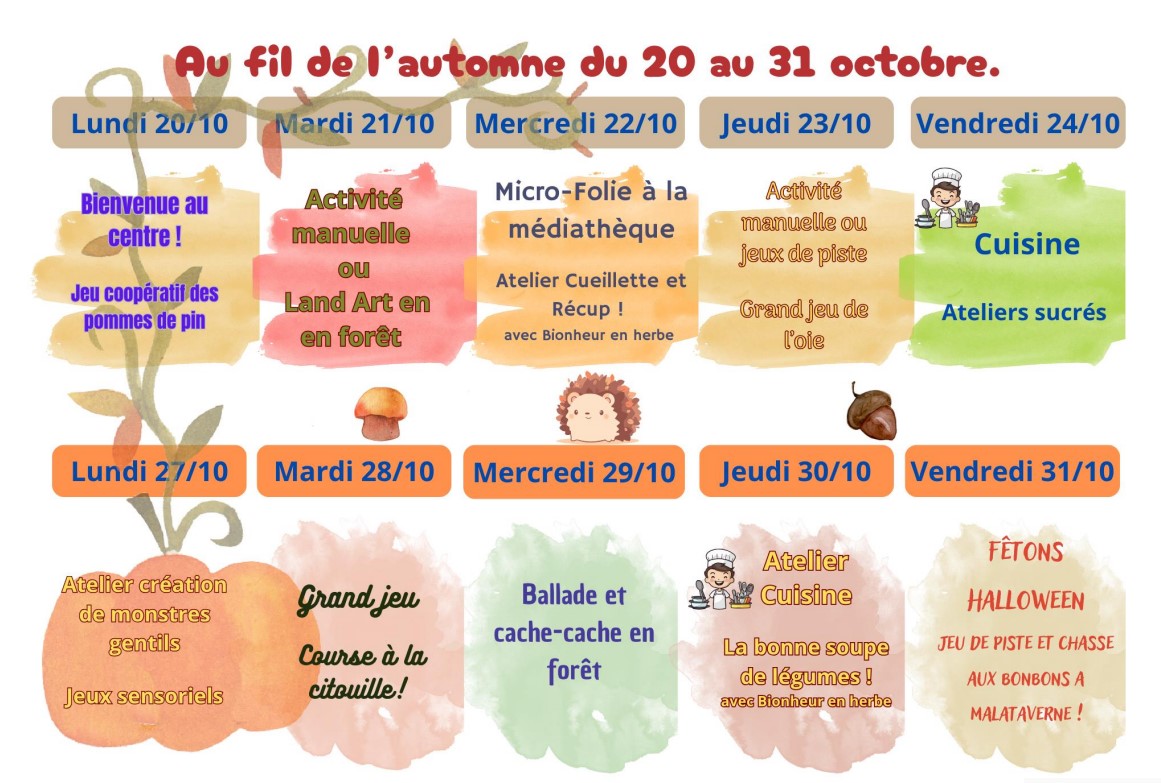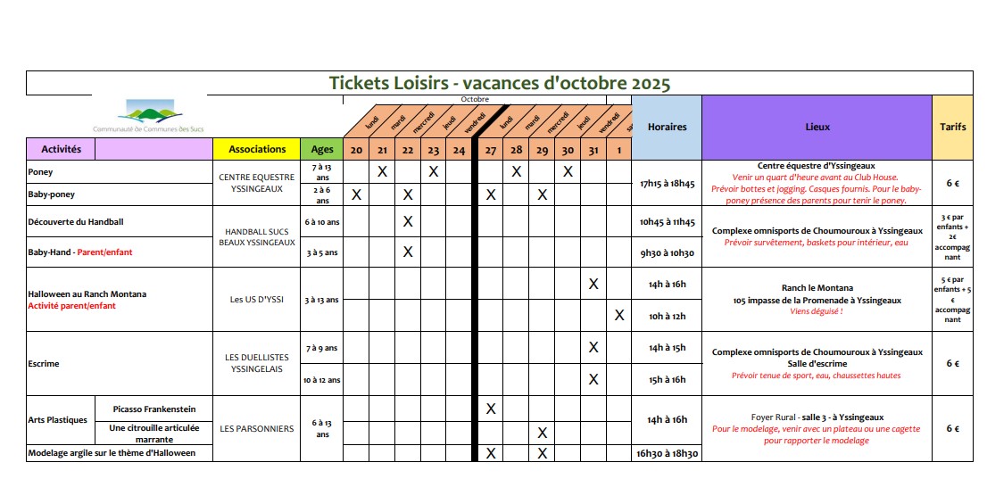 Comme chaque automne, pour les enfants de 2 à 15 ans, la Communauté de Communes des Sucs, en partenariat avec les associations du territoire, propose une multitude d’activités pendant les deux semaines des vacances scolaires.