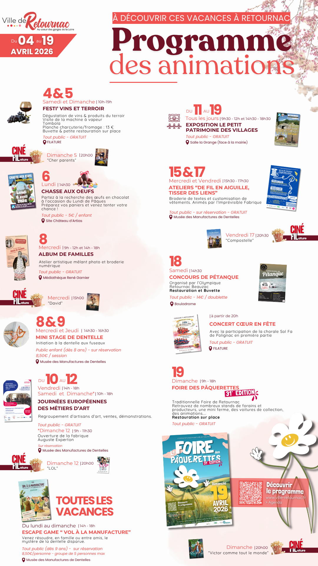 Du 4 au 19 avril 2026, profitez d’un programme d’animations pour tous 🎉